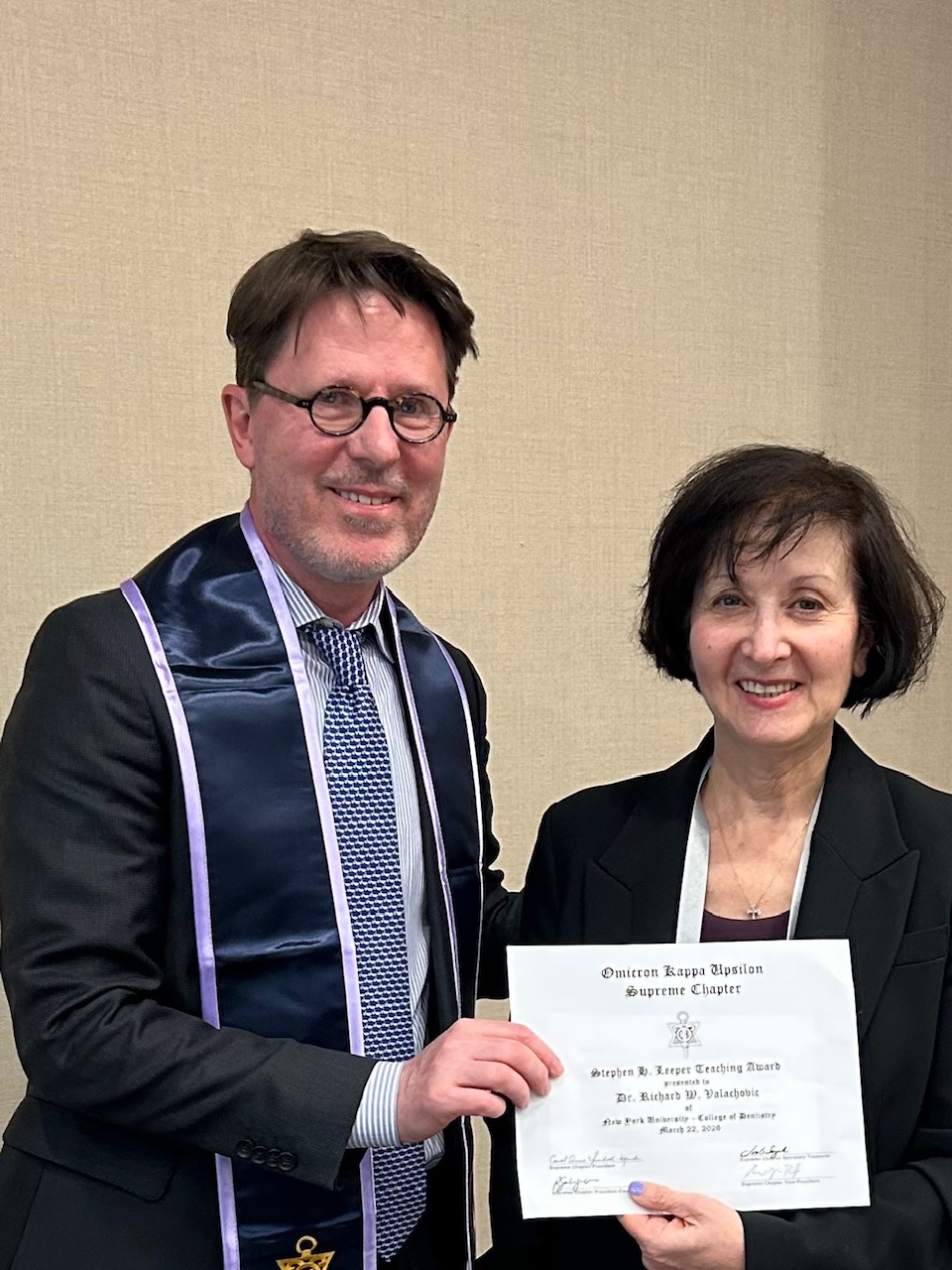 The OKU Supreme Chapter Vice President Dean Andre Ritter awarded Dr. , New York University, with the Leeper Award for 2026. On behalf of Omega Omega chapter, NYU faculty delegate accepted the award, in Montreal, Canada during the ADEA meetings. The Stephen H. Leeper Award for Teaching Excellence recognizes dental educators who have displayed exemplary standards in dental pedagogy while demonstrating vision and advancement in dental education.